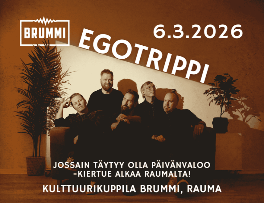 Kyllä. Keväällä 2026 Kulttuurikuppila Brummin lavalle nousee kotimaisen popin rakastettu klassikko – Egotrippi! Bändi suuntaa ensimmäiselle klubikiertueelleen seitsemään vuoteen ja mukana kulkee myös upouutta musiikkia. Laita kalenteriin merkintä, että sulla on menoa ja nappaa liput NYT!